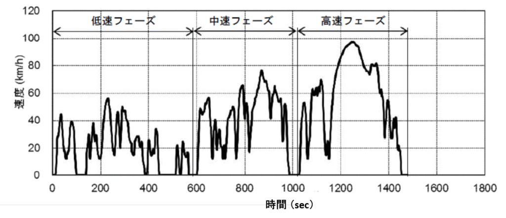 この走行パターンは、速度や加減速、停止・再発進などを含んでおり、標準化された方法で全車が同じ条件で測定されます。ちなみにですが、大半のモードでエアコンはOFFです。